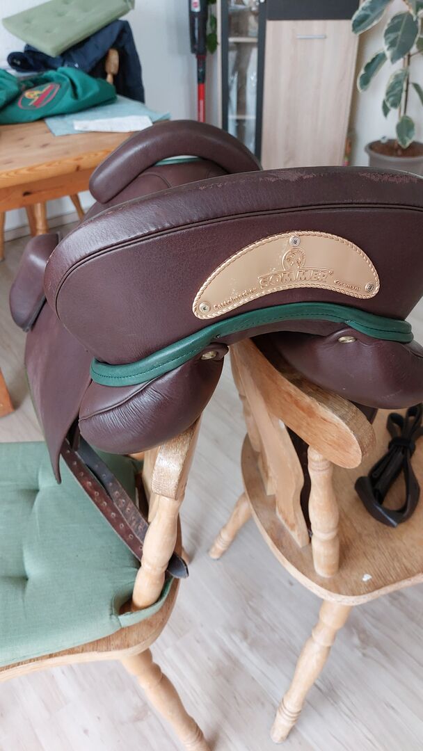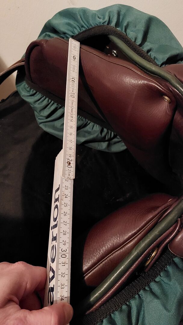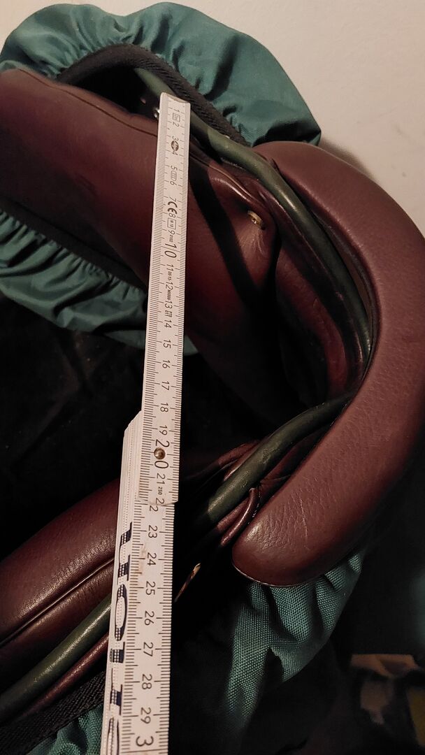 Speciale kenmerken: × diepe zit × zomerzadelboek × kleur bruin/groen × gratis bruine stijgbeugels inbegrepen × originele zadelhoes × zitmaat 19 / 20 × schedelbreedte 31,5 / 32 × de schedelbreedte kan worden gevarieerd van 28 tot 38