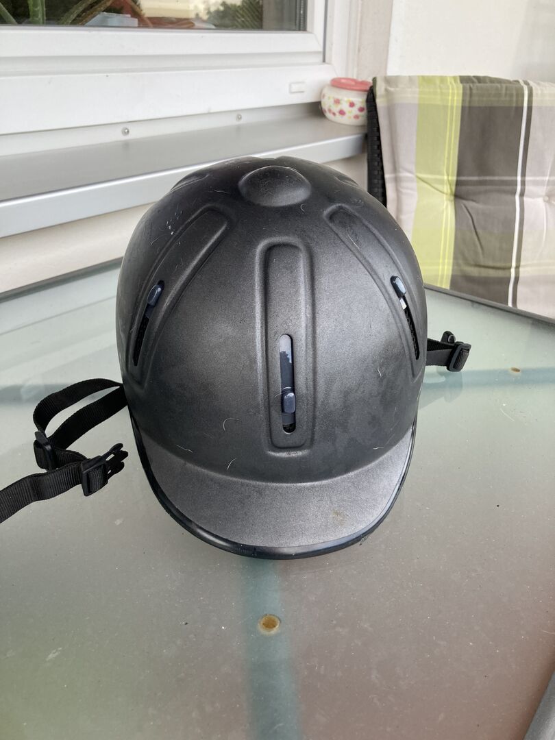 Gut erhaltene schwarze Reitkappe
