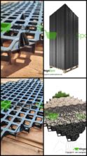 Robuuste NEOGRID 40 mm grasroosters gemaakt van 100% gerecycled kunststof - de ideale oplossing voor parkeerterreinen, parkeerplaatsen, opritten, verkeerszones en aangelegde terreinen.