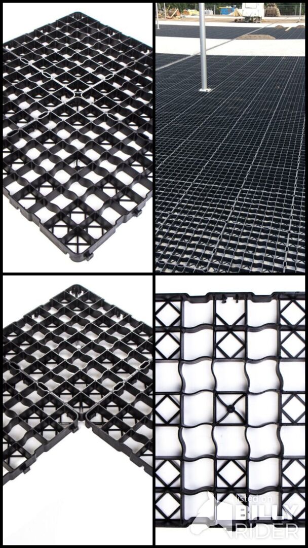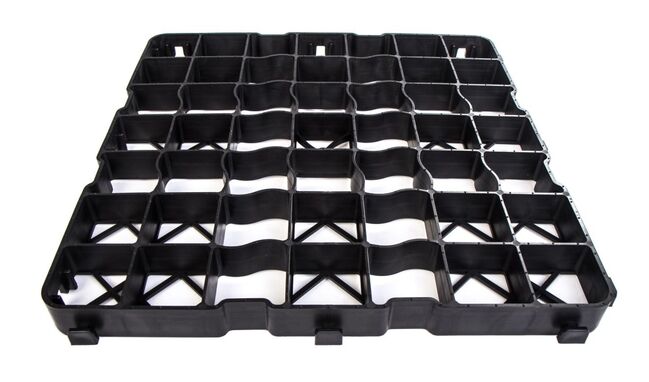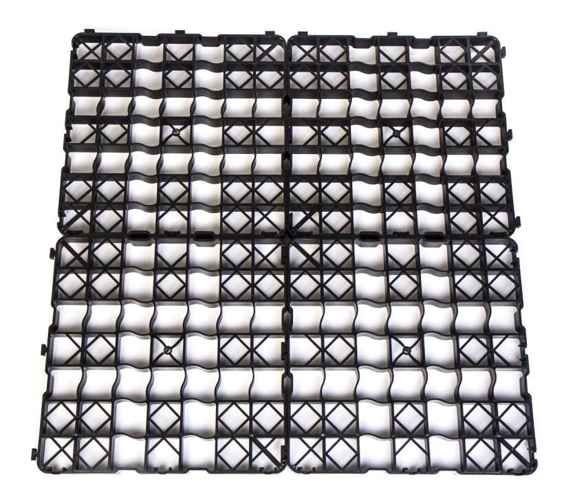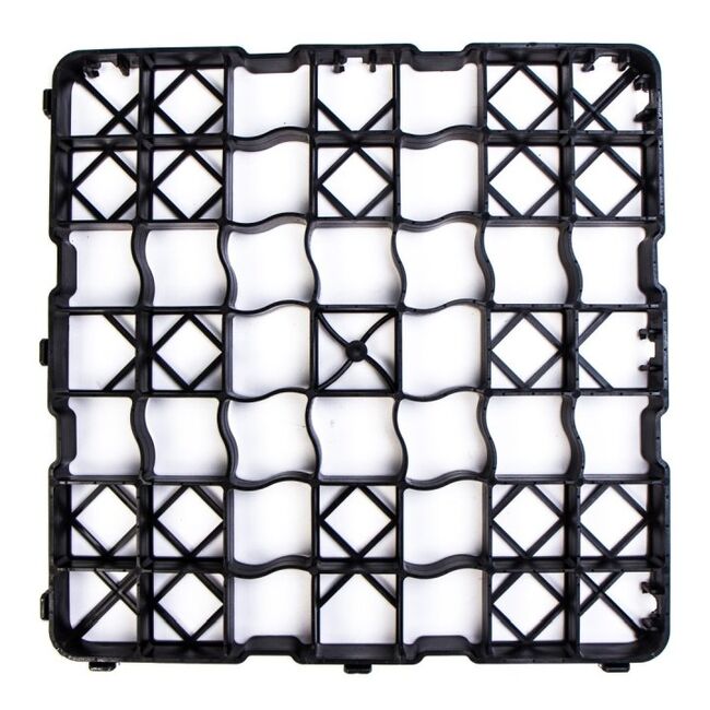 Productinformatie Snelle installatie dankzij kliksysteem Beveiligd vergrendelingssysteem Al grotendeels voorgemonteerd op 1 m² Elastische kunststof - aanbevolen overlapping van minstens 2 cm Tot 1,5 ton belastbaar (afhankelijk van ondergrond en vulling) Groot contactoppervlak door steunkruis Installatie mogelijk met minimale onderbouw