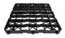 Clevergrid40-Art.0140 Prijs 12 € per m² (4 stuks maken 1 m²) incl. btw voor eigen ophaling Technische details Afmeting 500 x 500 x 40 mm Gewicht per m² ca. 4,80kg Wanddikte buitenframe 4mm, binnenrooster 3mm Roostermaat 68 x 68mm Grondstof PE-LD/PE-HD geregenereerd materiaal Kleur zwart Bruikbaar oppervlak 4 stuks maken 1 m² indien gelegd Belasting 200 t/m² (laboratoriumwaarde)