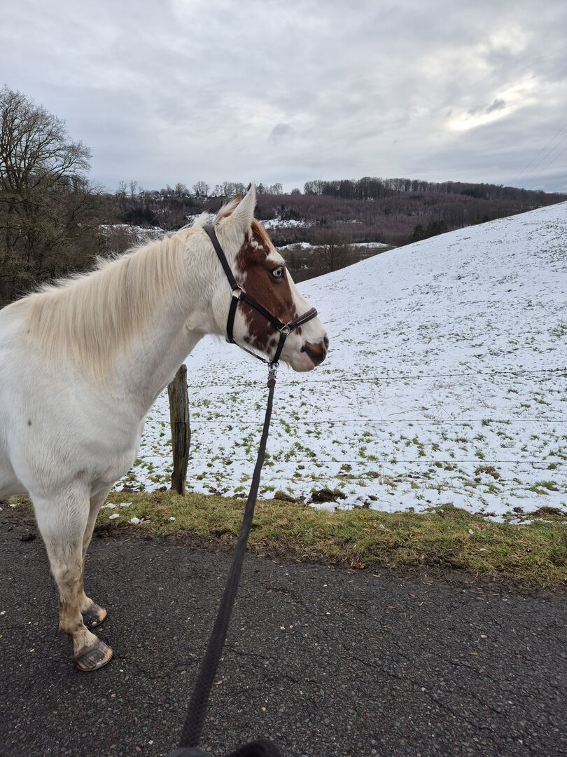 Paint-Mix merrie - Mijn merrie Brada, geboren op 20.05.13, is te koop. Stm. 148cm. Western en Engels getraind. Momenteel wordt ze licht en voornamelijk vanaf de grond gewerkt. Ze gaat echter graag off-road.