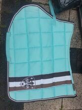 - Eskadron dressuur zadeldek DL groen, Klawunde Edition, ongebruikt - Eskadron ICE 2014 Big Square VS, gebruikt, een paar kleine vlekken, maar ok - Groene zweetdeken 145 cm, fleece, ongebruikt - Beenbeschermers H1 groen van Gera - Set van 4 bandages WB Eskadron donkergroen, gebruikt en niet helemaal schoon