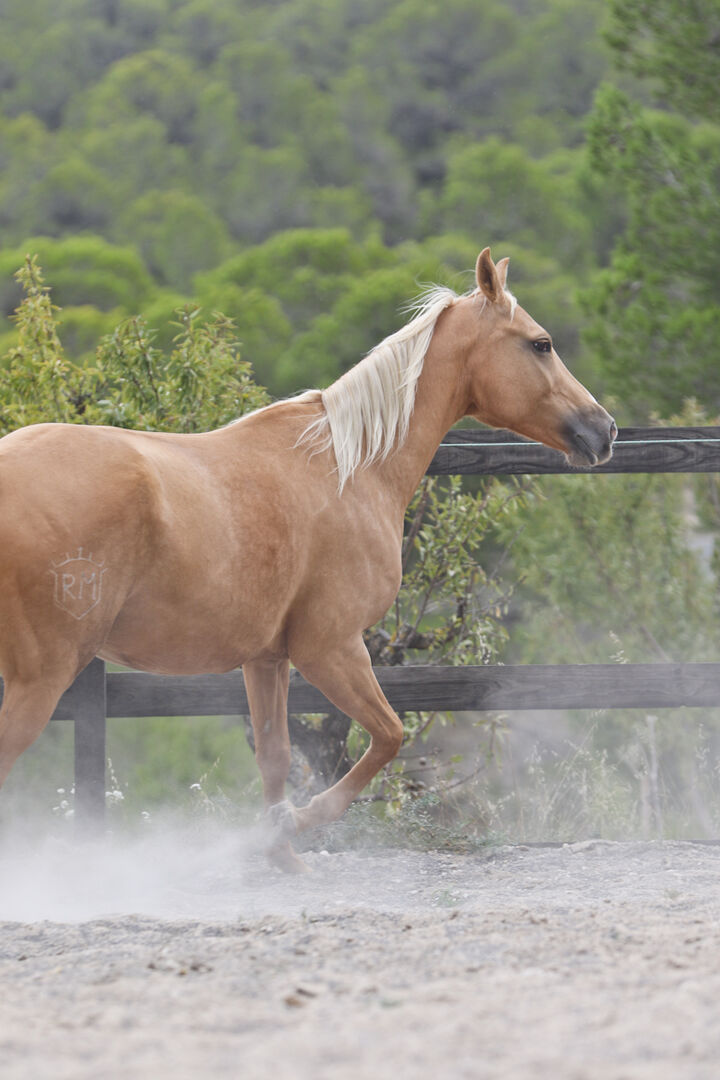 Ze werd geboren met 5 woedeaanvallen, maar is nu al 2 jaar lang niet meer geritten, omdat ze als Zuchstute werd gebruikt. Op dit moment staat ze nog steeds in de Stutenherde, samen met haar fohlen (deze is een Schokopalominohengstfohlen - ook interessant voor die Zucht - zie de laatste foto's van haar fohlen).