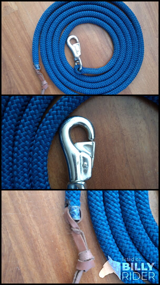 Blauw Parelli touw, lengte 3,80m incl. karabijnhaak en lederen uiteinde.