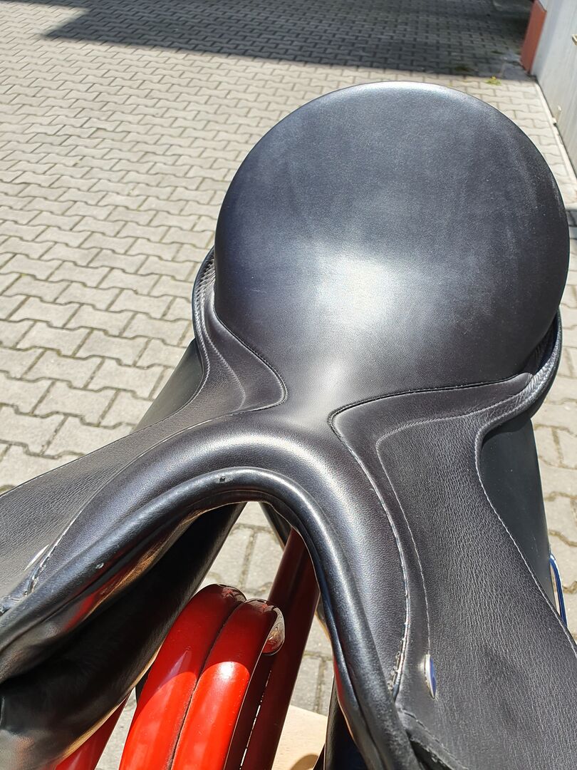 Uitrusting Synthetische zadelboom, diepe zit, hoge dijbeensteunen SP10, 2 singelpanelen van 70 cm incl. singelriem, zadelpanelen voor meer vrijheid bij de schoft. De kamer is traploos instelbaar, hij staat nu op medium. Het zadel is zeer comfortabel en zit goed zonder te knellen. De curve van de zadelboom past bij een tamelijk rechte ruglijn. Het contactoppervlak is ca. 43 cm - dus ook geschikt voor korte paarden. Het zadel heeft een brede zadelgeul en is geschikt voor hoge schoft. Het zadel is altijd droog opgeslagen geweest en met de originele panelen. Het heeft nauwelijks gebruikssporen - zie foto's, want het was pas het tweede zadel vanaf het begin. Ik kan langskomen om het te passen in de buurt van Frankfurt. Verzending voor een fitting is niet mogelijk. Originele prijs: € 2.250.