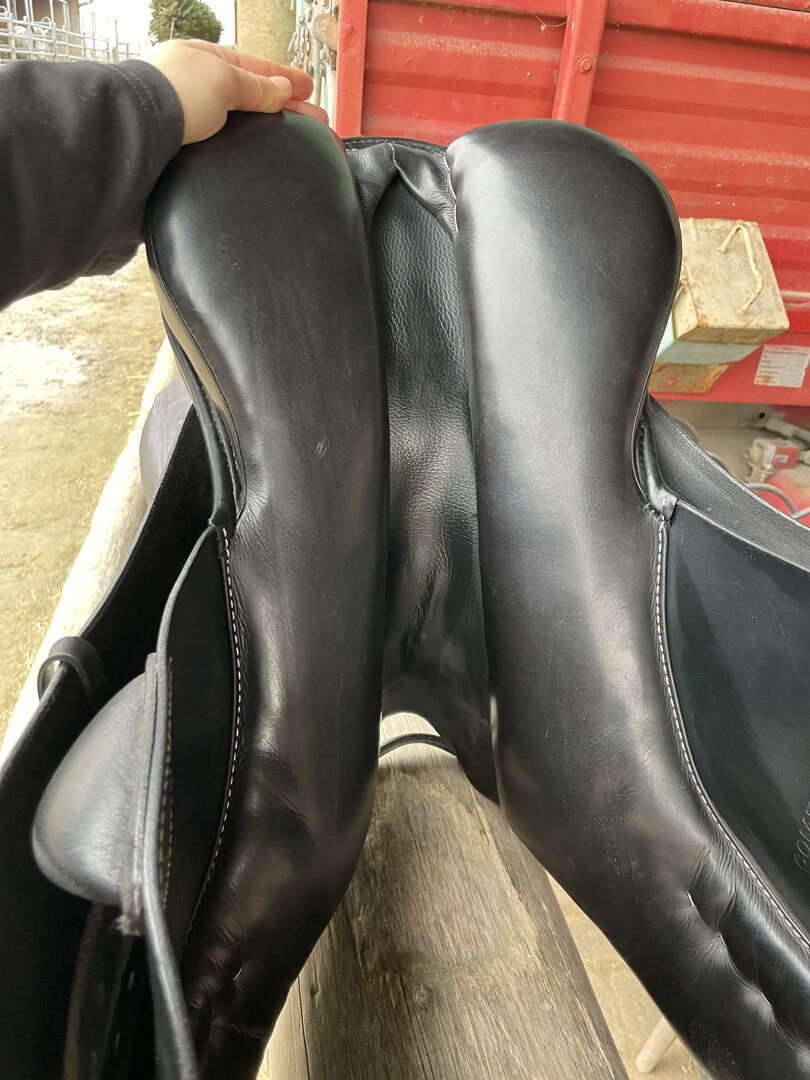 Ik heb dit prachtige zadel zelf tweedehands gekocht, helaas heb ik er maar vijf keer op gereden. Het model maakt indruk met een zeer kort contactoppervlak en gedubbeld leer. Het is gebruikt maar zeer goed verzorgd, zonder zichtbare gebreken behalve de gebruikelijke gebruikssporen op de zadelklep van de stijgbeugelriemen. Laatst opgevuld 07/2022 door vorige eigenaar.