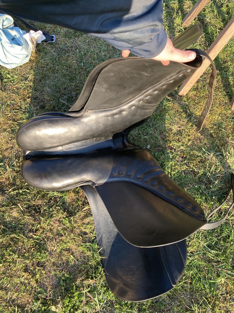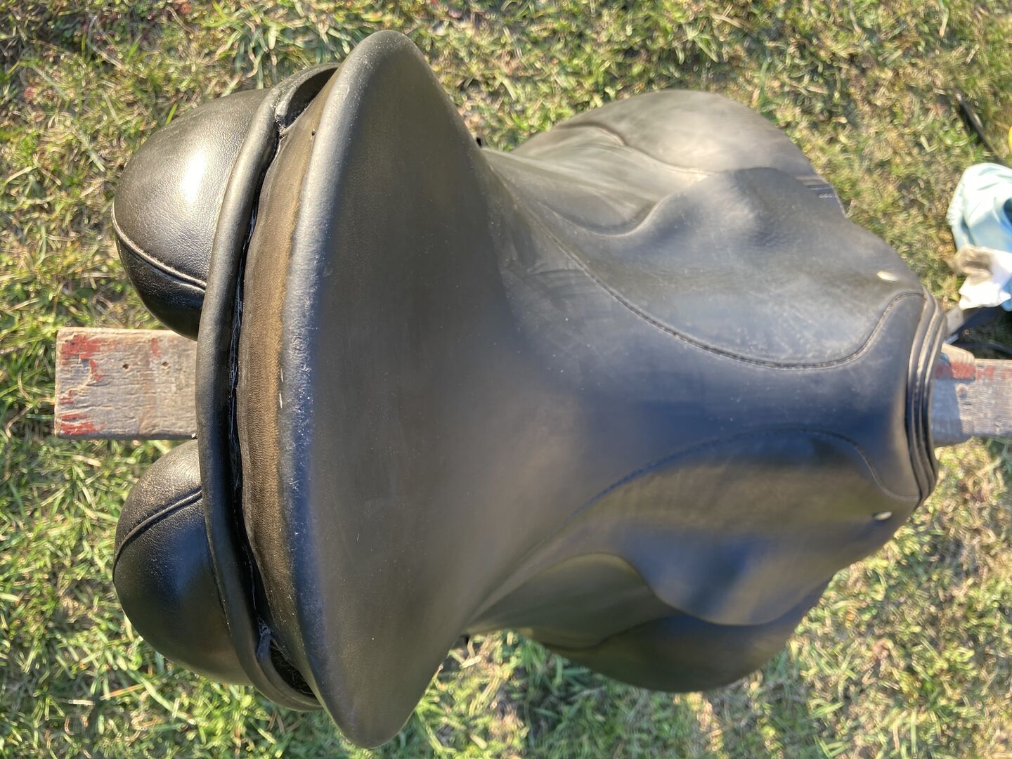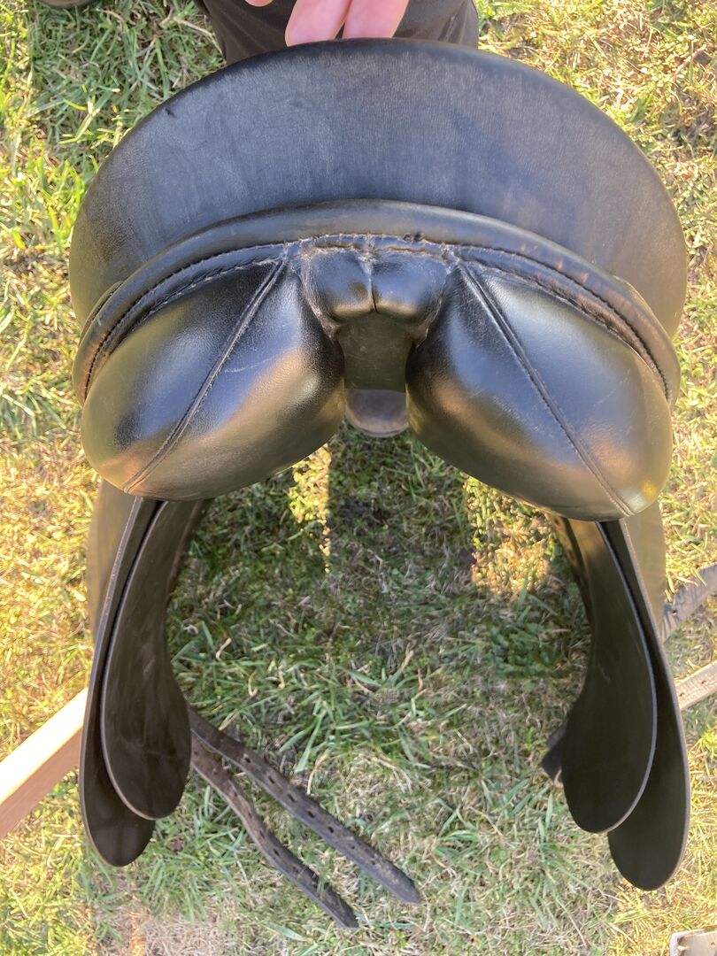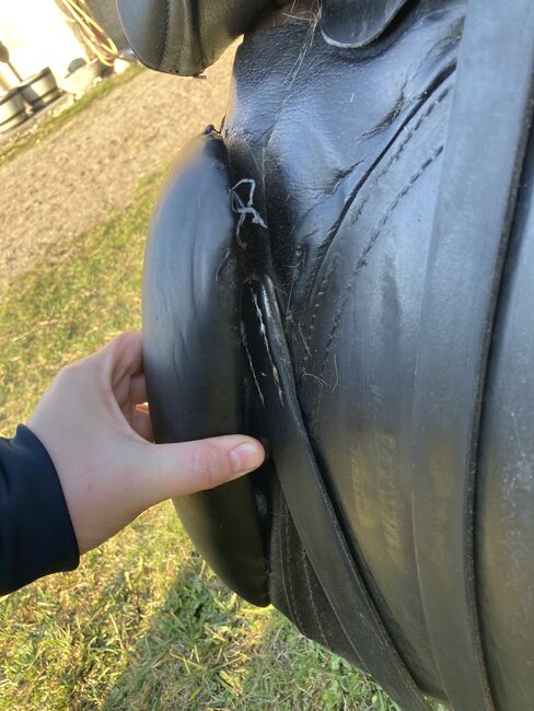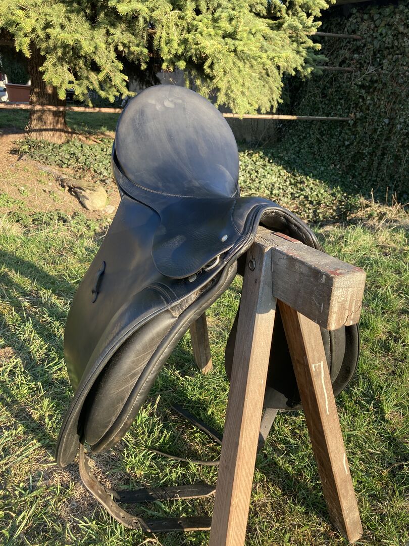 Slechts één van de pommelpanelen moet opnieuw worden gerepareerd, een deel van de naad is losgekomen. Maar het geeft geen problemen tijdens het rijden, je merkt het niet.