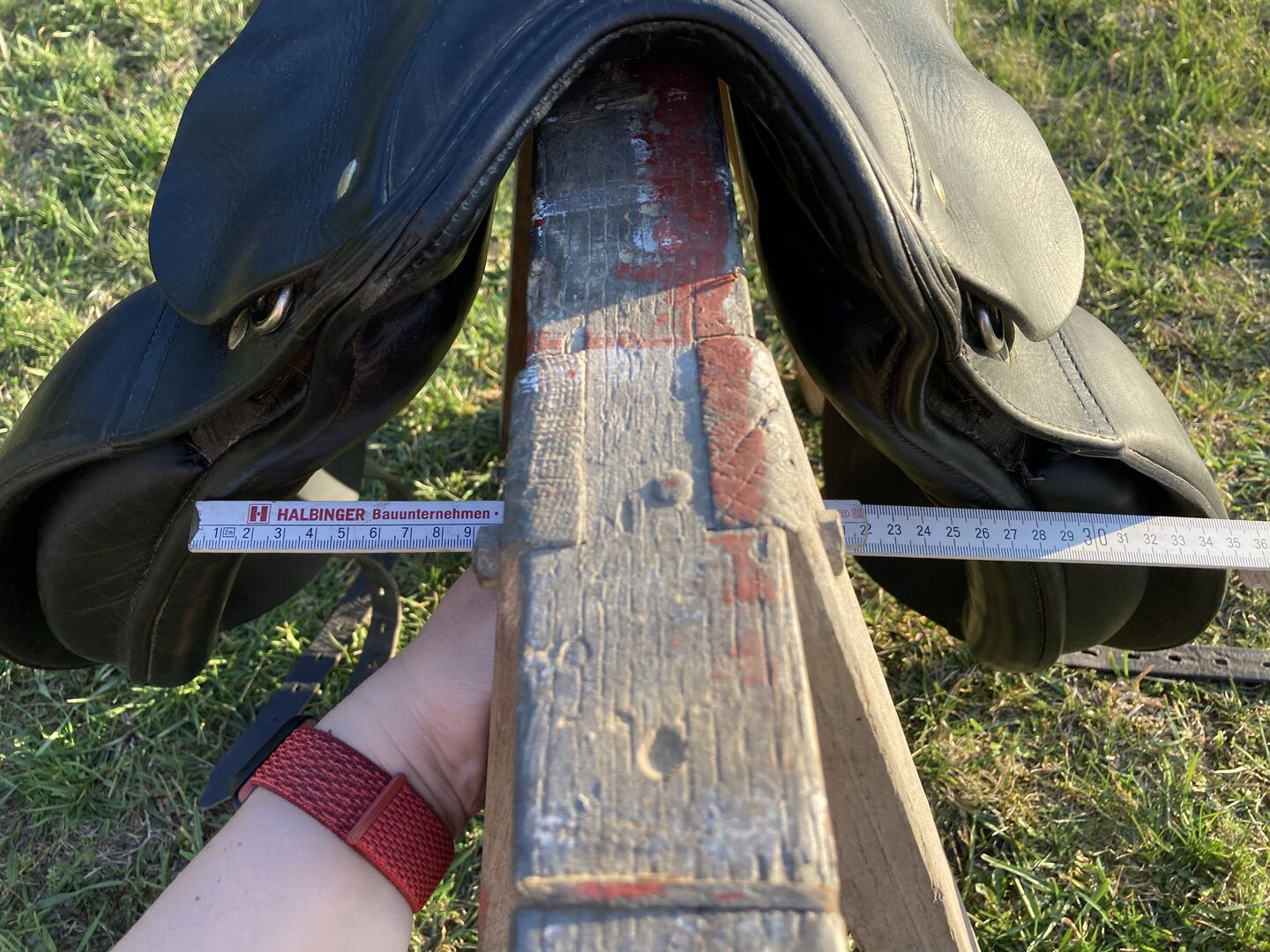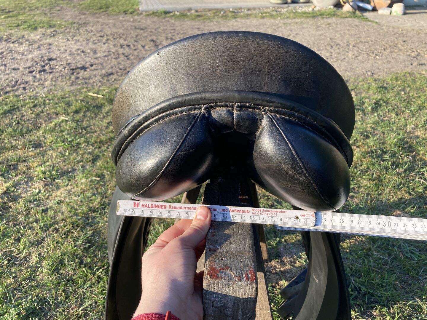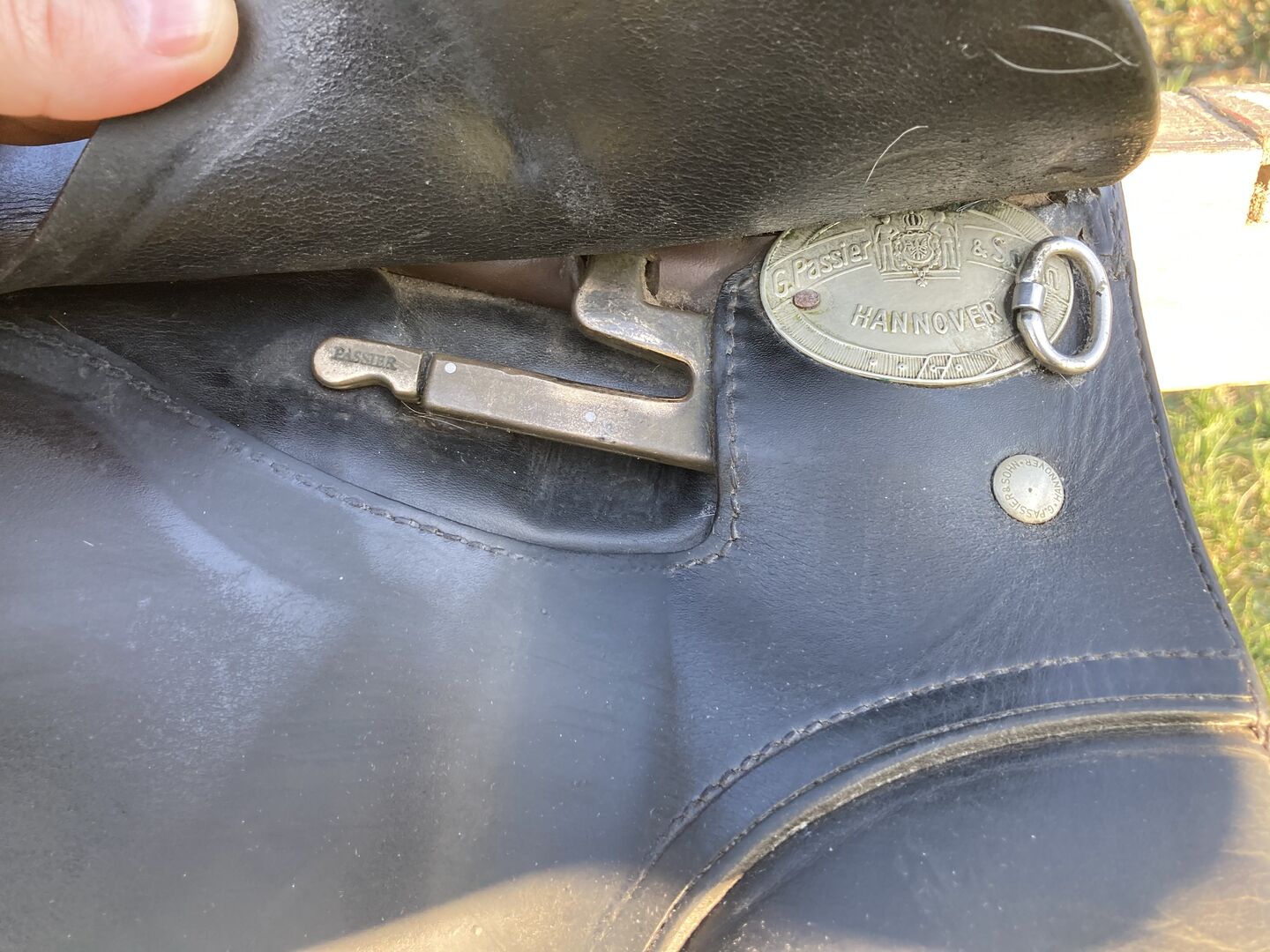 Slechts één van de pommelpanelen moet opnieuw worden gerepareerd, een deel van de naad is losgekomen. Maar het geeft geen problemen tijdens het rijden, je merkt het niet.