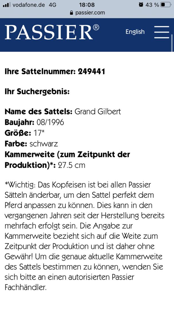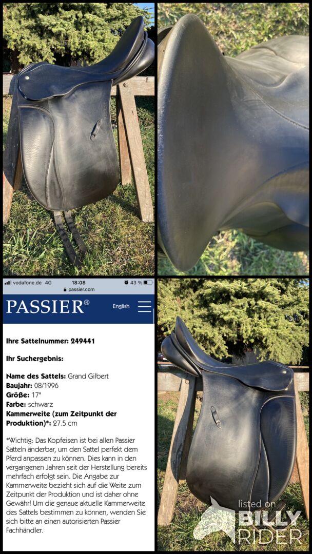 Passier Grand Gilbert Dressuurzadel 17" 27,5cm - Dressuurzadel "Grand Gilbert" van Passier. Een beetje ouder, maar in zeer goede staat.