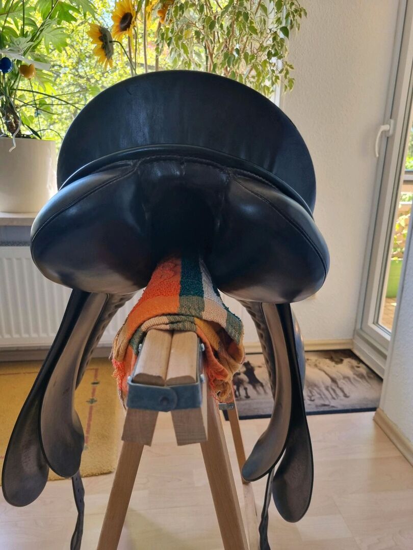 Passier Optimum dressuurzadel 17,5 inch (zwart) - Het zadel is al wat ouder, maar nog steeds in zeer goede staat. Het is regelmatig zadelmak gemaakt door een zadelmaker en is over het algemeen weinig gebruikt omdat het mijn derde zadel was, zoals je kunt zien aan de singelstoten, die bijna geen tekenen van slijtage vertonen.