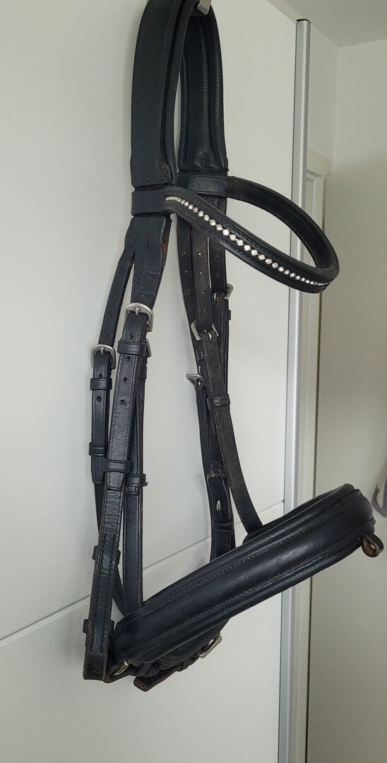 Passier sluiting "Fortuna - Anatomisch gevormd, elegant hoofdstel met elastische inzetstukken. In zeer goede staat en van geweldige kwaliteit. Het hoofdstel is altijd droog opgeslagen geweest.