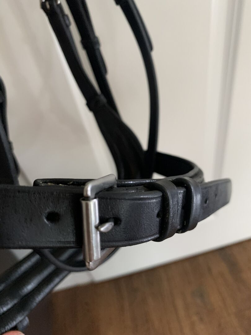 PASSIER snaffle, Passierblue spirit, Engels gecombineerd, WB - Ik verkoop een zelden gebruikt, zwart Passierblue Spirit hoofdstel in maat WB. Het hoofdstel is Engels gecombineerd en biedt meer vrijheid voor het jukbeen. De originele kinriem is inbegrepen, evenals de teugels. Nieuwprijs 225€. Voor vragen etc. kun je contact met me opnemen.