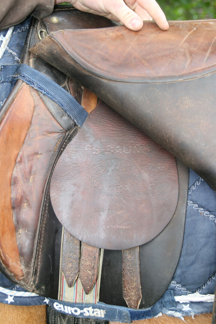 Het zadel wordt verkocht met stijgbeugels (gebruikte riemen en stijgbeugels met gebruikssporen).