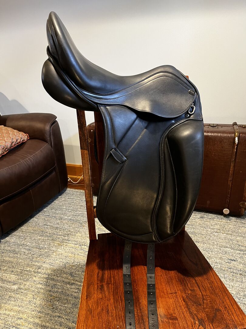 Purchased used from Equus Now a few months ago only to discover the seat is too big for me. Adjustable gullet using the PDS gullet exchange system and currently has the silver tree, which corresponds to wide. Overall excellent condition with a small ding on the lower left knee roll and flap (see photos). Not sure if some of the billets were replaced, but there is one somewhat longer than the other on each side. Not a huge problem, but it is a little inconvenient. Seat is very comfortable and monoflap puts less between your leg and your horse, which is also quite nice.