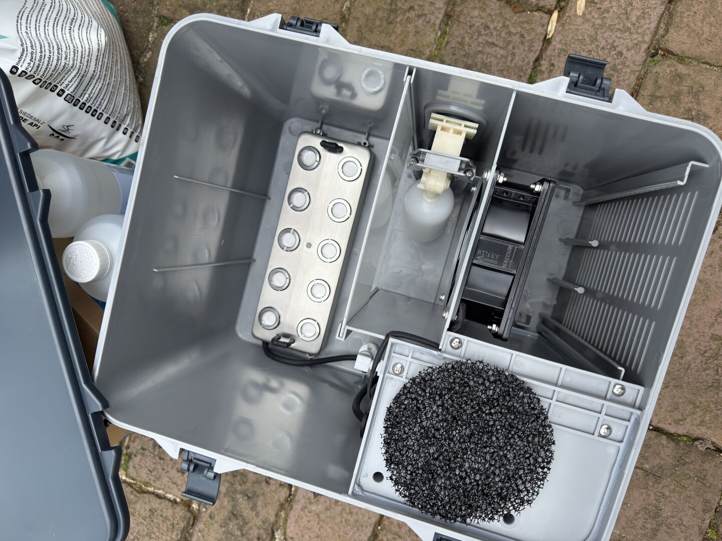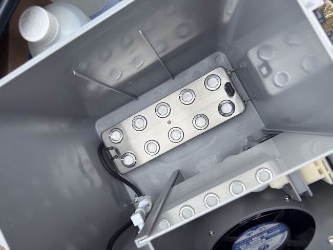 Pekelvernevelaar Vernevelaar met grote capaciteit Pekelkamer Inhalator Zoolbox - Vernevelaaropbrengst ca. 60 ml/min. De vernevelaar is niet vaak gebruikt en is altijd met zorg behandeld, na elk gebruik schoongemaakt en altijd binnen opgeslagen. Helaas is de vernevelaar niet meer nodig door het overlijden van het paard en staat hij al enige tijd ongebruikt. Ik verkoop hem alleen in opdracht. Met 10 liter Nacl en ca. 5 kg farmaceutisch zout (voor het mengen van pekel). Ophalen heeft de voorkeur. Verzenden zou mogelijk zijn, maar dan in twee pakketten.