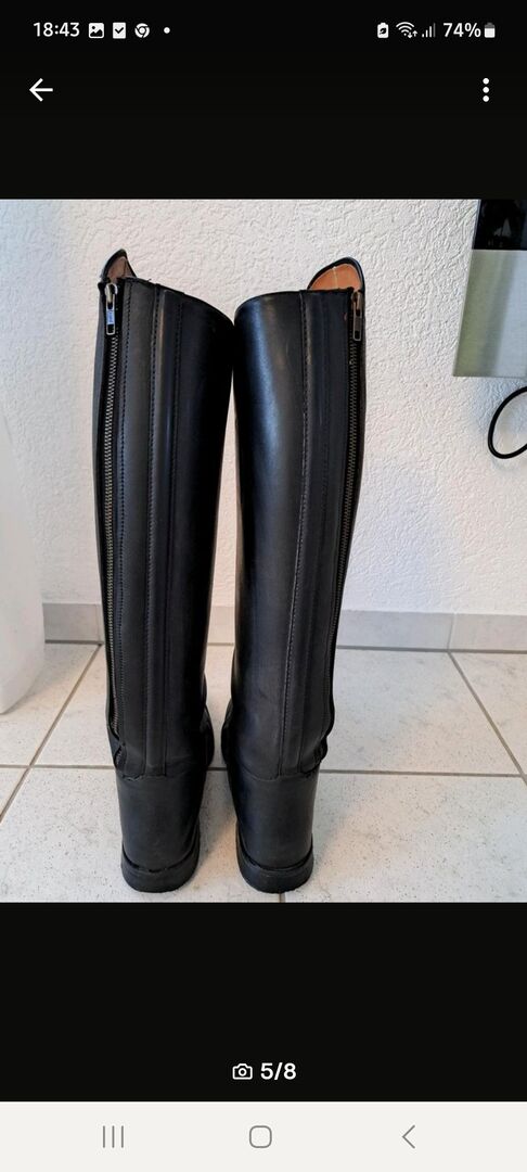 Petrie rijlaarzen maat 42 - Te koop zeer goed bewaarde rijlaarzen maat 42 Afmetingen van de laars zie foto Ritsen zijn intact. Incl. laarzenspanners verzending 7,49 Particuliere verkoop geen garantie of retournering