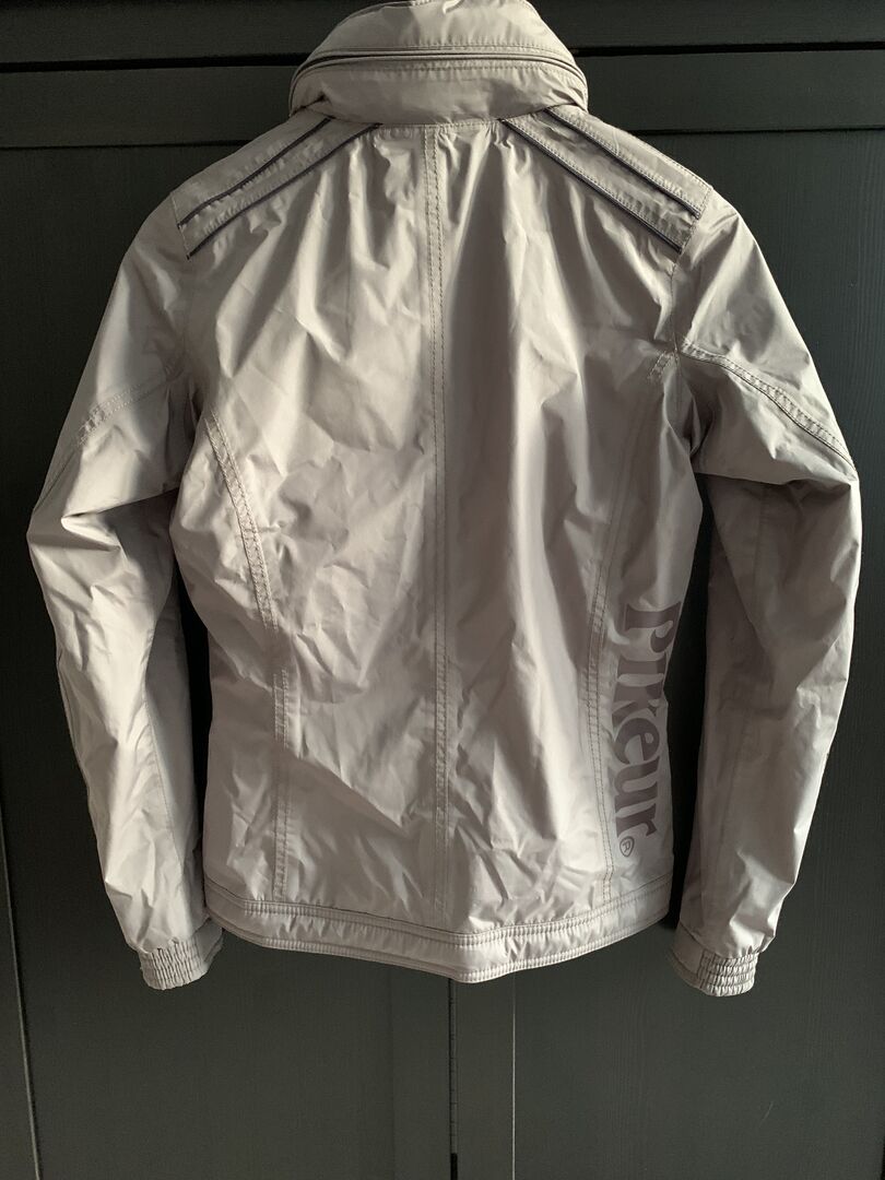 Pikeur jas Vitana, beige, 34, regenjas - Ik verkoop mijn nauwelijks gedragen Pikeur jasje Vitana in maat 34. Het heeft veel zakken en een capuchon die in de kraag verstopt kan worden. Het heeft geen gaten, vlekken of andere tekenen van slijtage. De kleur van het jasje is meer zoals op de foto met de zwarte achtergrond. Het ziet er altijd een beetje anders uit in elk licht, maar het lijkt meer op de kleur op de foto's waar het voor de zwarte kleerkast hangt.
