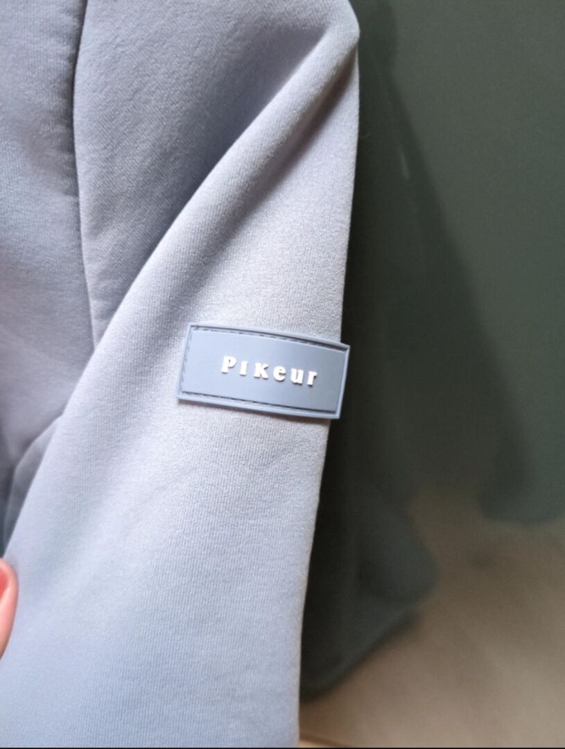 Ritsshirt lange mouw polartec Powerstretch van pikeur in maat 40, model Dina uit 2022, kleur duifblauw of hemelsblauw. Met rits aan de voorkant, zacht gevoerd aan de binnenkant. Pikeur-patch op de linkermouw, strass-etiket op de rug. Valt zoals gewoonlijk niet heel groot, past 38 tot 40. Niet veel gedragen als onderlaag, met zorg behandeld en altijd gewassen met mild wasmiddel. Kleine materiaalclaim op de rug boven het label. Originele prijs 119