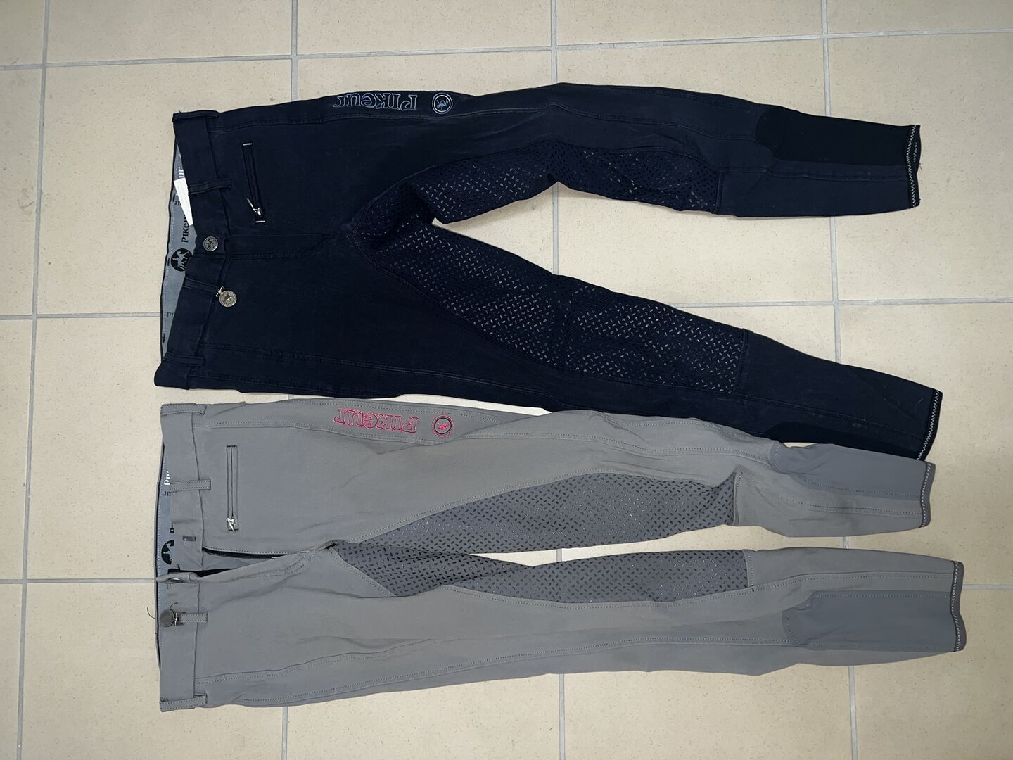 Pikeurbroek grijs en blauw - Ik verkoop twee kinderbroeken, een lichtgrijze en een marineblauwe. De grijze is aan één kant licht beschadigd, maar heeft geen invloed op het dragen.