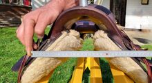 Zie de foto's voor afmetingen en conditie. EN: De kat van de boerderij heeft helaas besloten om ons zadel als slaap- en speelplek te gebruiken, let op de krassen!