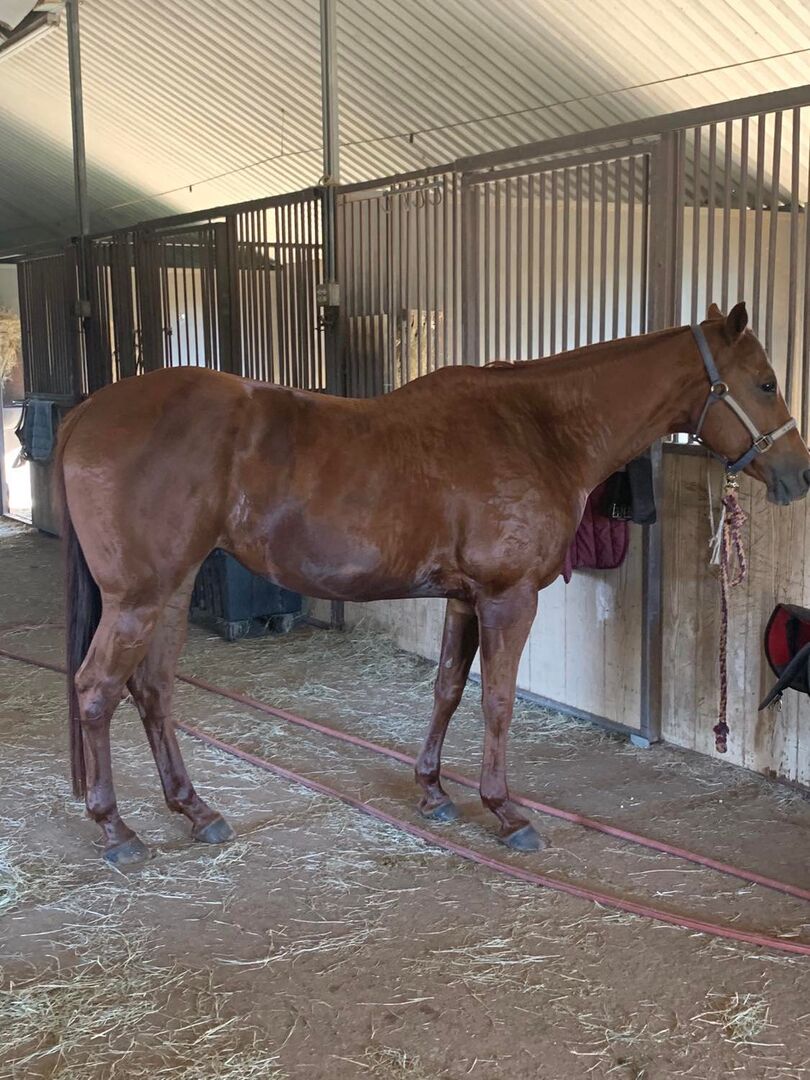 15.2hh chestnut mare. Played indoors and outdoors. Suit intermediate Rider. Snaffle mouth. Good to load, tie up and trim. Back in work this week. Only for sale as we are moving back to the UK.