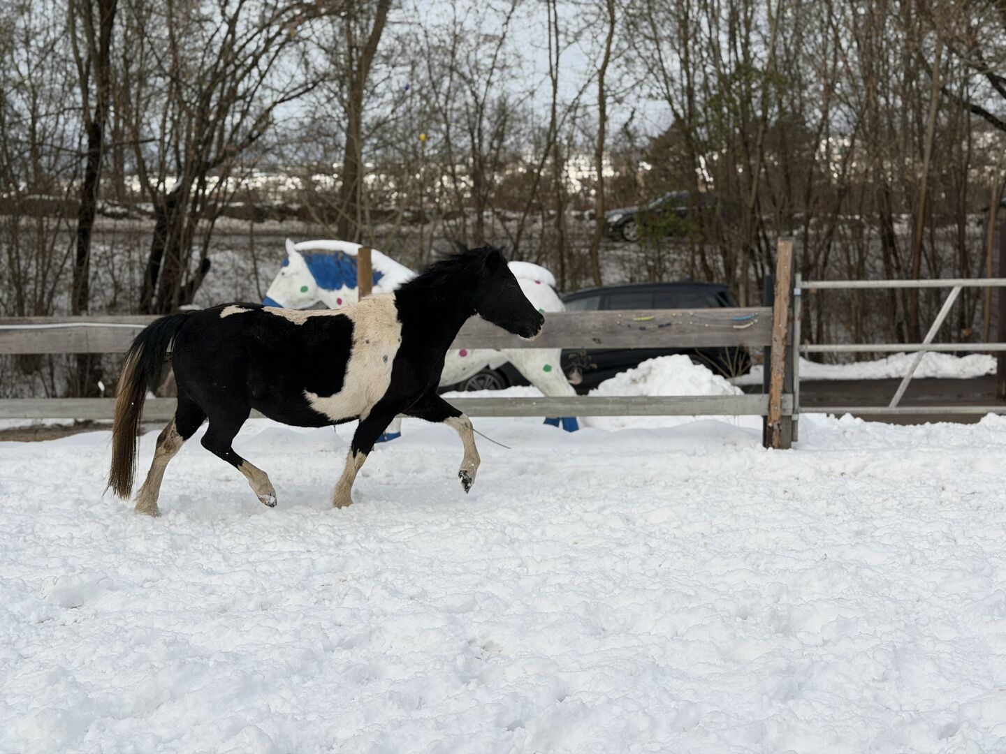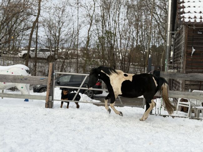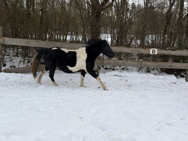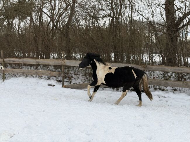 Op bestelling te koop is een zwartbonte pony merrie (Tinker type / mix), geboren op 04.08.2009, ongeveer 130-135 cm hoog.