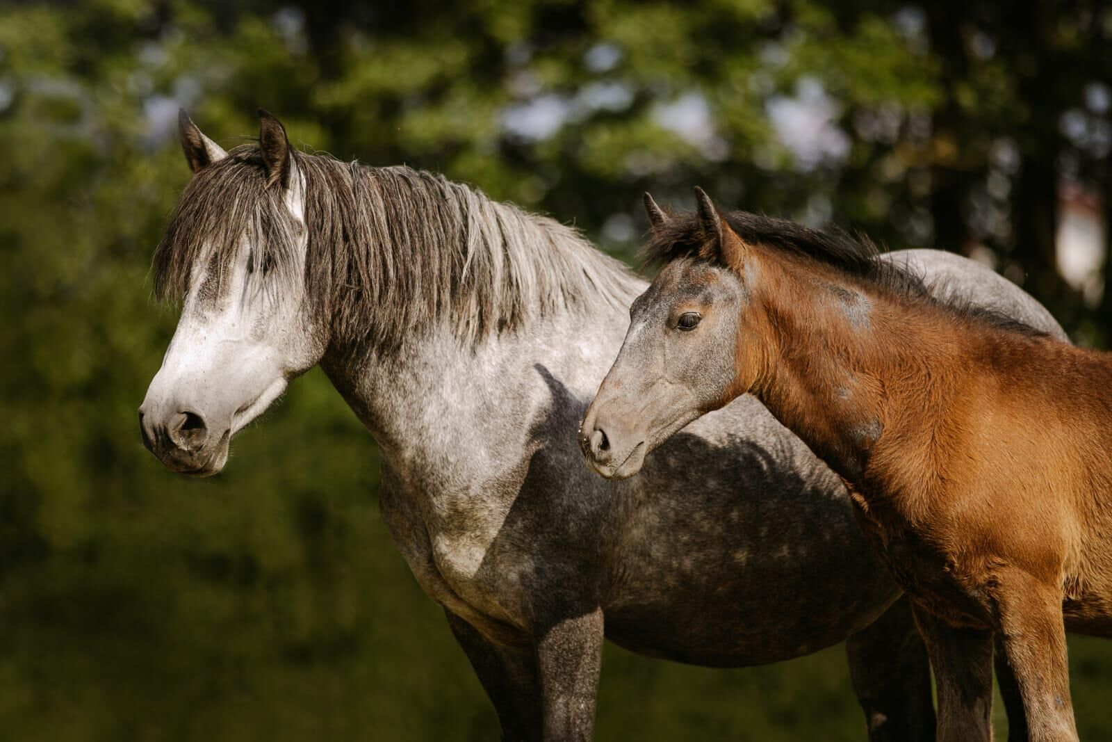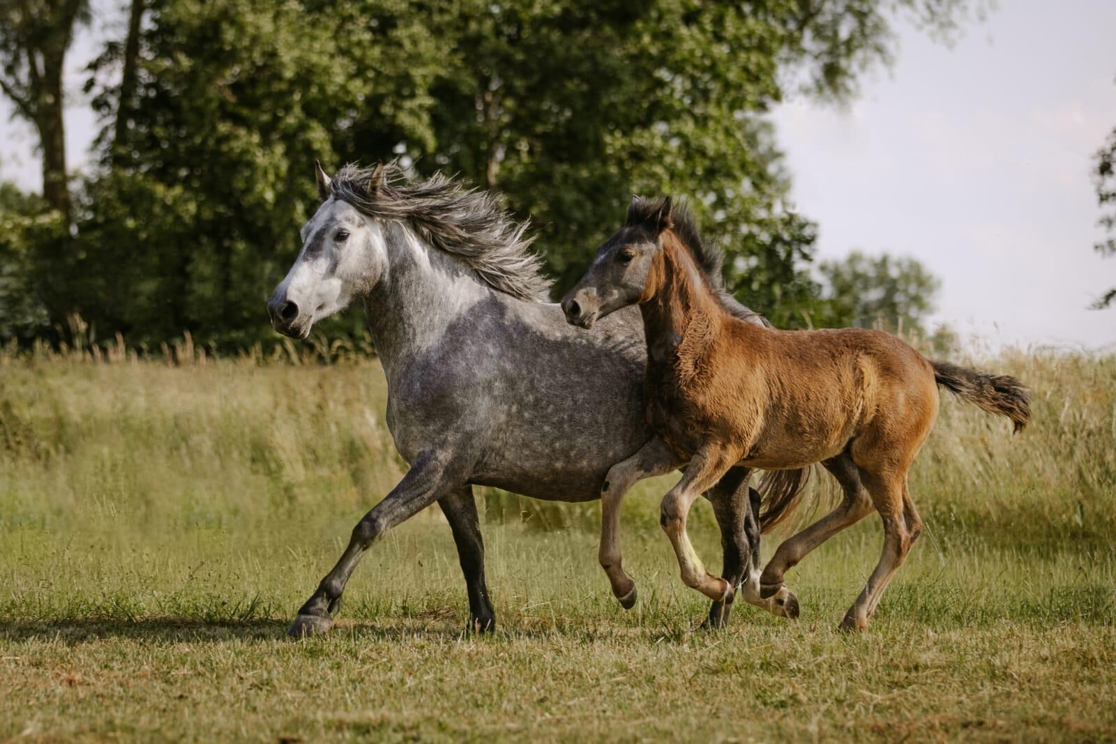 Pony merrie met veulen - Schneeflocke is een 6-jarige Poolse pony merrie die samen met haar veulen (geboren februari 2023) op zoek is naar een nieuw thuis. Schneeflocke heeft een stokmaat van ongeveer 1.50m. Vanwege haar zwangerschap heeft ze de afgelopen maanden een pauze ingelast. Ze is erg fijn in de omgang en is bereid om beladen te worden.