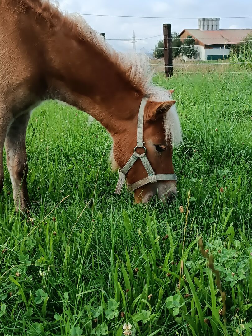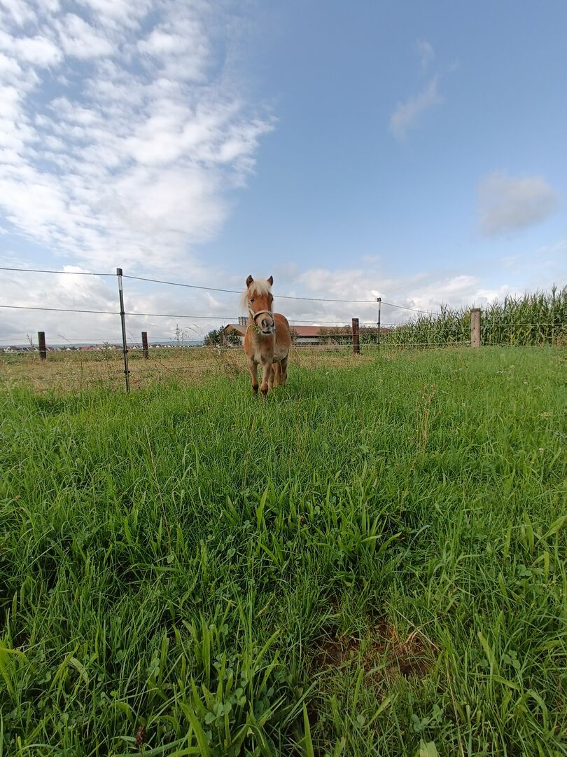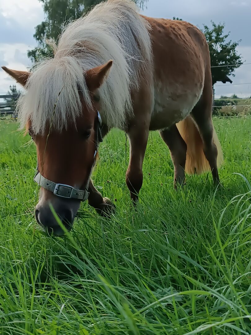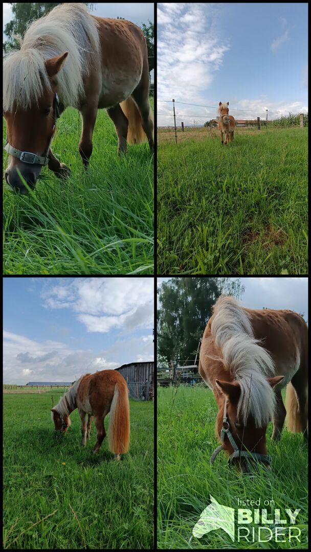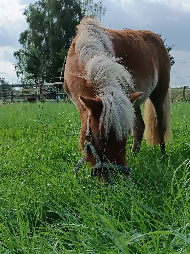 Shetlandpony x Haflinger, jaarling merrie vanaf 2022, stokmaat momenteel ca. 85 cm Moeder merrie Shetland pony stokmaat ca. 100 cm, vader Haflinger ca. 145 cm