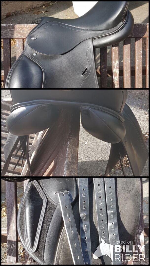 Pony springzadel 16,5" - Wij verkopen ons zeer weinig gebruikte en daardoor zeer goed geconserveerde pony springzadel van het merk "Tekna" in maat 16,5". Contactoppervlak ca. 41cm. Op dit moment is er een oranjerode slokdarmplaat gemonteerd! Het werd gebruikt op een normaal gebouwde G-pony die helaas niet meer mag springen!