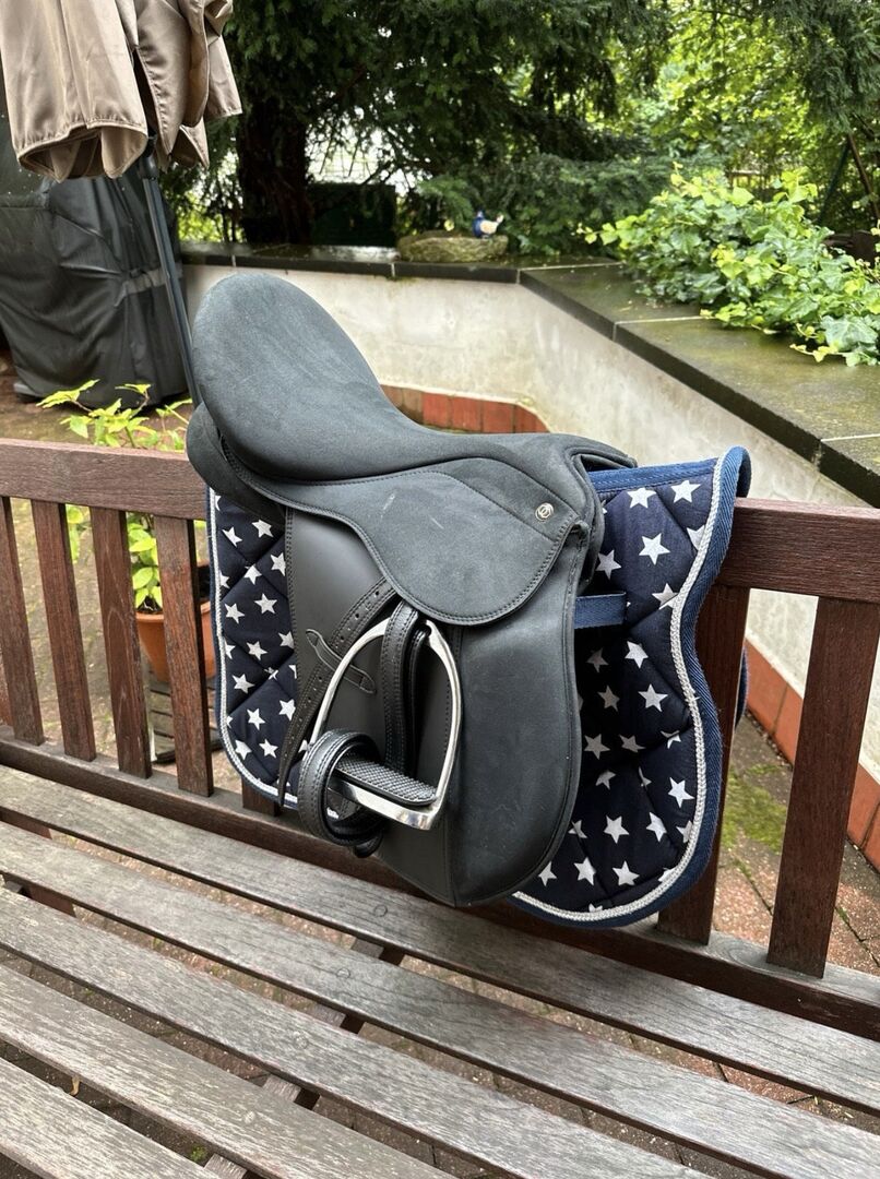 Stijgbeugels en riemen zijn inbegrepen, het zadeldek kan apart worden gekocht.