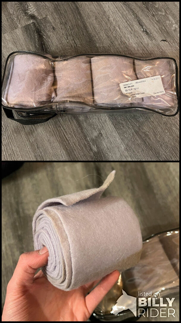 Ponyverband lila - Gebruikte bandages voor pony's en volbloeden met slanke benen te koop. De bandages worden voor verzending natuurlijk nog een keer gewassen en zitten al in de wasmachine. De kleur is prachtig lila. De bandages werden altijd droog bewaard en als ze nat waren, werden ze eerst gedroogd en daarna opgerold.