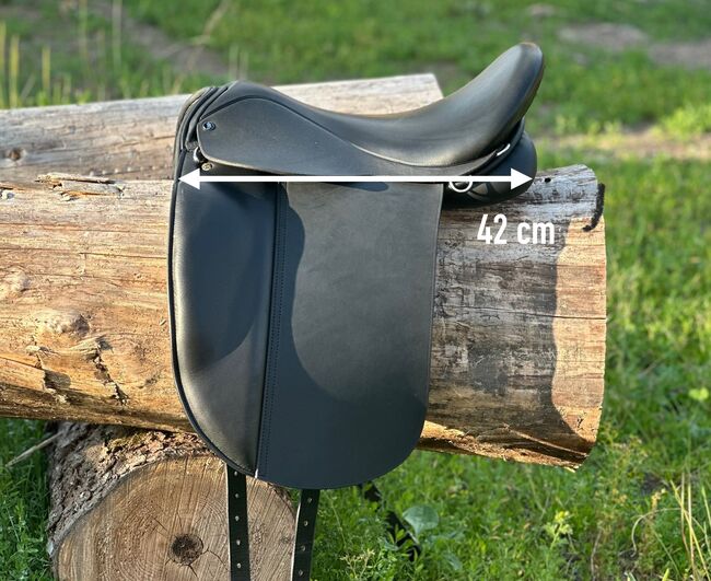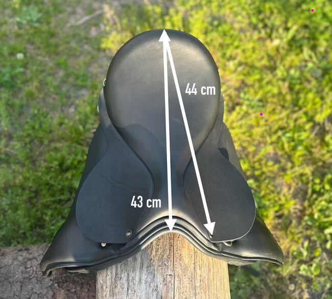 Ponyzadel voor volwassenen - extra kort - monsterverzending - IJslandse Haflinger Tinker Welsh COB Fjord - Extra kort ponyzadel voor volwassenen - past op ronde ponytypes, rechte rug, lage schoft. 17" (tot maat 40/42) - slokdarm ca. 40 cm (totale lengte 42 cm) - KW 34 - breed wervelkanaal (zie foto's voor afmetingen). Verzending op goedkeuring (verzekerd met DHL-trackingnummer).