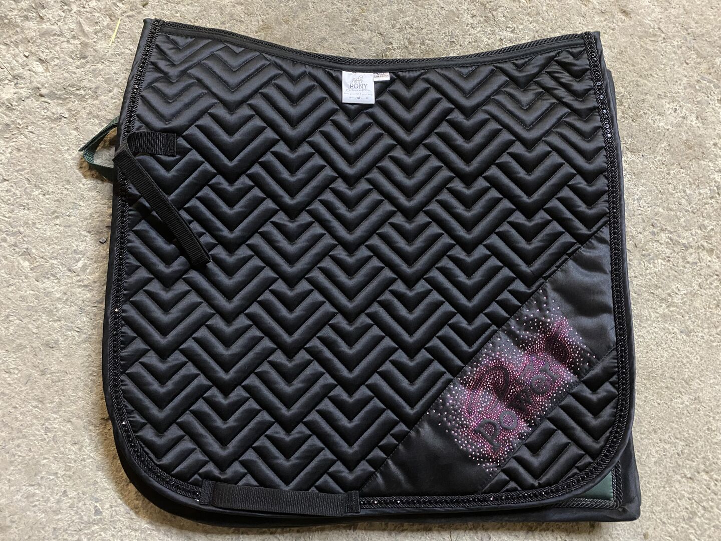 Ponyzus zadeldek zwart/roze DR - Ik bied een ongebruikt en dus nieuw zadeldek aan van het merk Ponyschwester. Kleur: Zwart met roze steentjes; Maat: DR