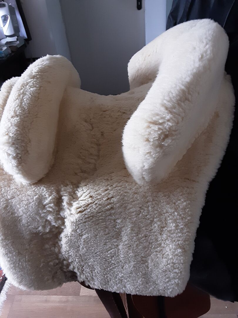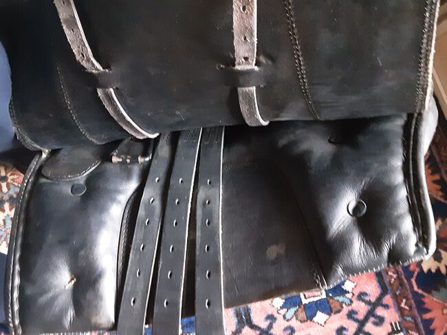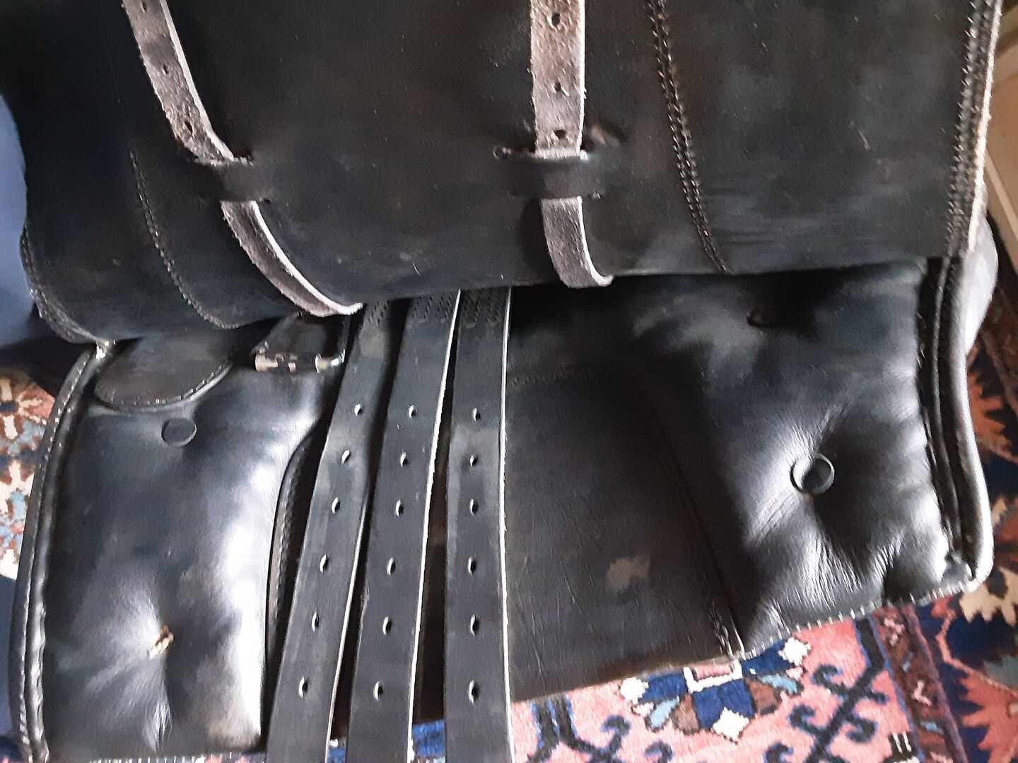 Portugees zadel zoals Goucha - Goed geconserveerd, comfortabel zadel dat veiligheid uitstraalt, met bijpassende Zalea van lamsvel, zadelonderkant zwart leer, meer foto's op aanvraag