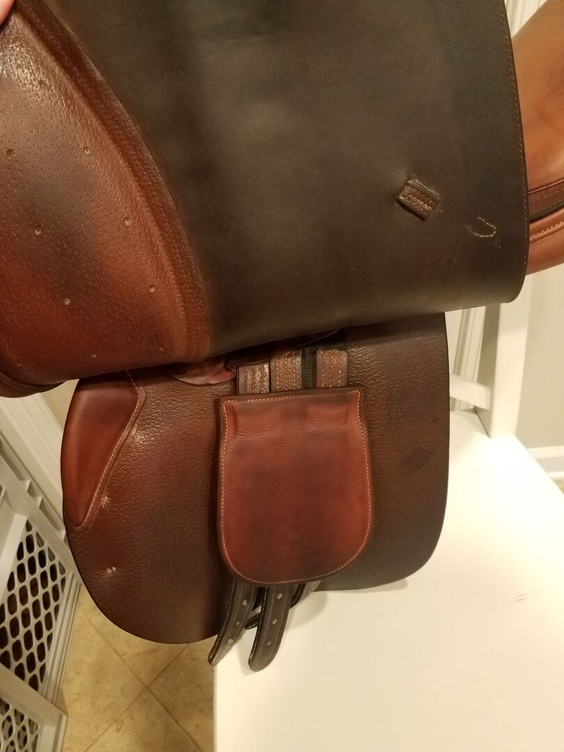 Beautiful and comfortable saddle, great condition. Quality Belgian saddle, very hard to find. I will probably be kicking myself for selling this in a few years time, but it is too narrow for my boy. 17 inch seat and medium tree.