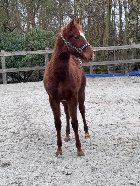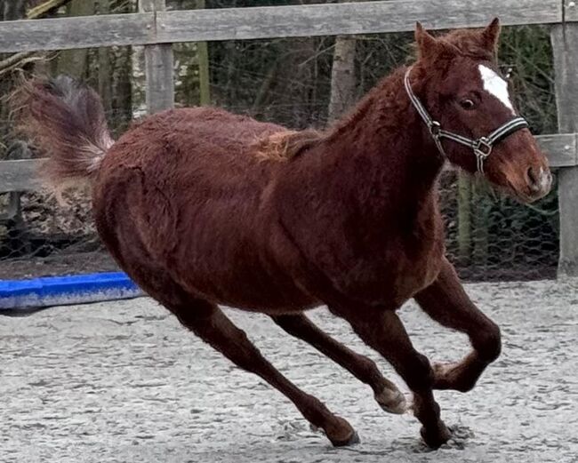 Shine Good is een mooie Amerikaanse Quarter Horse merrie, geboren op 23.04.2025, in de kleur Sorrel rabicano. Ze heeft AQHA-papieren (American Quarter Horse Association) en zal naar verwachting een stokmaat van ongeveer 152 cm bereiken. De jonge merrie maakt indruk met haar correcte bouw, haar zeer goede ontwikkeling en haar uitgebalanceerde bespiering. Lyra is gezond en groeit op in de beste omstandigheden met veel liefde. Ze kent haar dierenarts en hoefsmid al, wordt regelmatig ingeënt en is makkelijk in de omgang. Lyra woont in een open stal in een gemengde kudde en is op natuurlijke wijze gespeend. Ze is halstertraind, weet hoe ze vastgebonden moet staan tijdens de verzorging en rijdt goed in de trailer met haar moeder. Veulen 1×1 heeft ze betrouwbaar onder de knie. Lyra's karakter wordt gekenmerkt door haar mensgerichtheid, nieuwsgierigheid en kalmte. Ze is goed opgevoed, speels voor haar leeftijd, heeft een geweldig temperament en is heel volgzaam en ruimdenkend. Haar liefdevolle karakter maakt haar een echt jong paard met potentie. Dankzij haar allround- en reiningafstamming is ze zowel geschikt als toekomstig showpaard als betrouwbare vrijetijdspartner. Met haar gouden karakter is Shine Good een echte belofte voor de toekomst. Ze wordt rechtstreeks van de fokker verkocht en alleen in de allerbeste handen. To the seller's offerlaunch