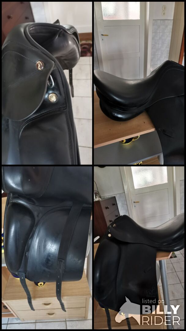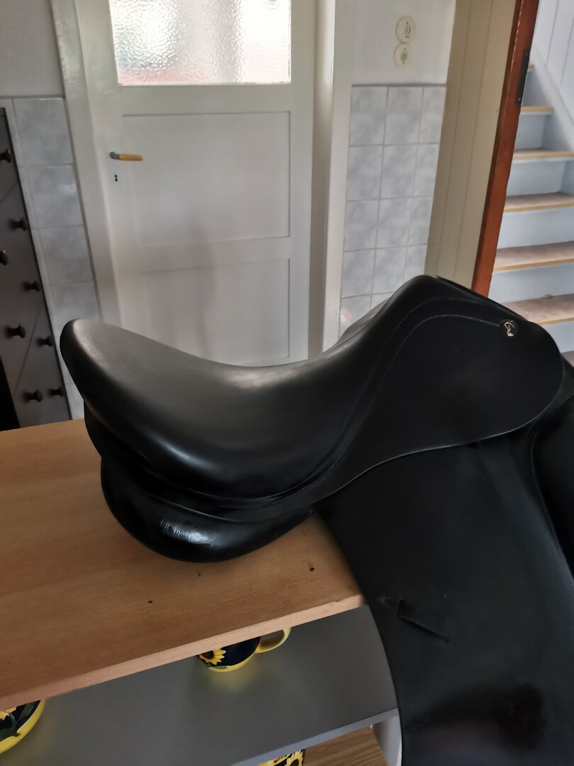 Prestige Dressuur Zadel Top Dressuur - Prachtige moderne dressuurzadel verkopen van Prestige model Top Dressage met dikke voorpommels en diepe correcte zit zodat het been van de ruiter altijd is waar het hoort en elke moeilijke dressuur slaagt mega