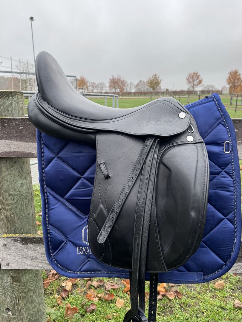 Prestige dressuurzadel 18" 33 mm kamer - Vanwege een nieuwe aankoop doe ik afstand van mijn goed onderhouden en altijd schone dressuurzadel. Wollen paneelvulling: de panelen in het gebied van de monnikskapspier zijn momenteel zwaar opgevuld omdat het paard holtes had gevormd. Mijn zadelmaker is bereid om naar je toe te komen en het zadel aan te passen of te beoordelen of het aan jouw paard aangepast kan worden. Wie is de zadelmaker? -> stuur mij een PN Goed netwerk ook in Zuid-Duitsland.