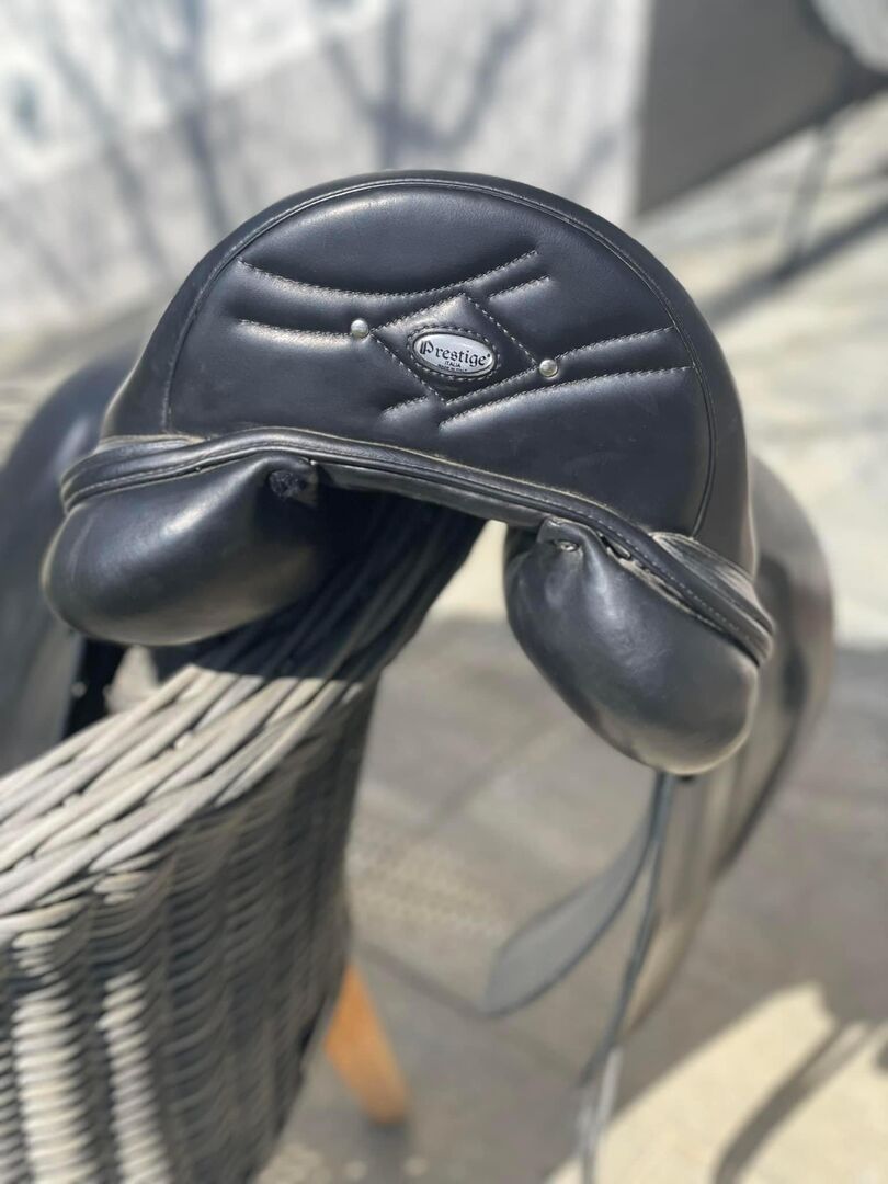 Prestige dressuurzadel - TE KOOP Driestangenzadel van Prestige Model 'Philosopy' D zadel 17 inch/ spleetbreedte 36 leeftijd 03/21 super goed onderhouden 1A staat Zadelboom met innovatieve CPS-concept membranen die specifiek stress absorberen. De schofthoogte is breder dan bij traditionele zadels om meer vrijheid te geven aan de schoft en de trapeziusspier. De diepe zit zorgt voor nabijheid tot het paard zonder de beweging te belemmeren. De halve maan van de galop is gemaakt van damastleer. Anatomisch gevormde pommels. 2.300,- Plaats Salzburg