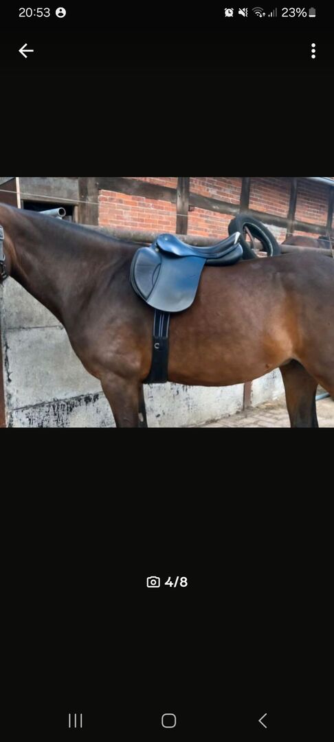 Het zadel is voorzien van een extra singelriem en is ook volledig opnieuw opgevuld met zachte vulling omdat het uit de fabriek kwam met een zeer harde vulling. Het past zich dus perfect aan de rug van het paard aan.