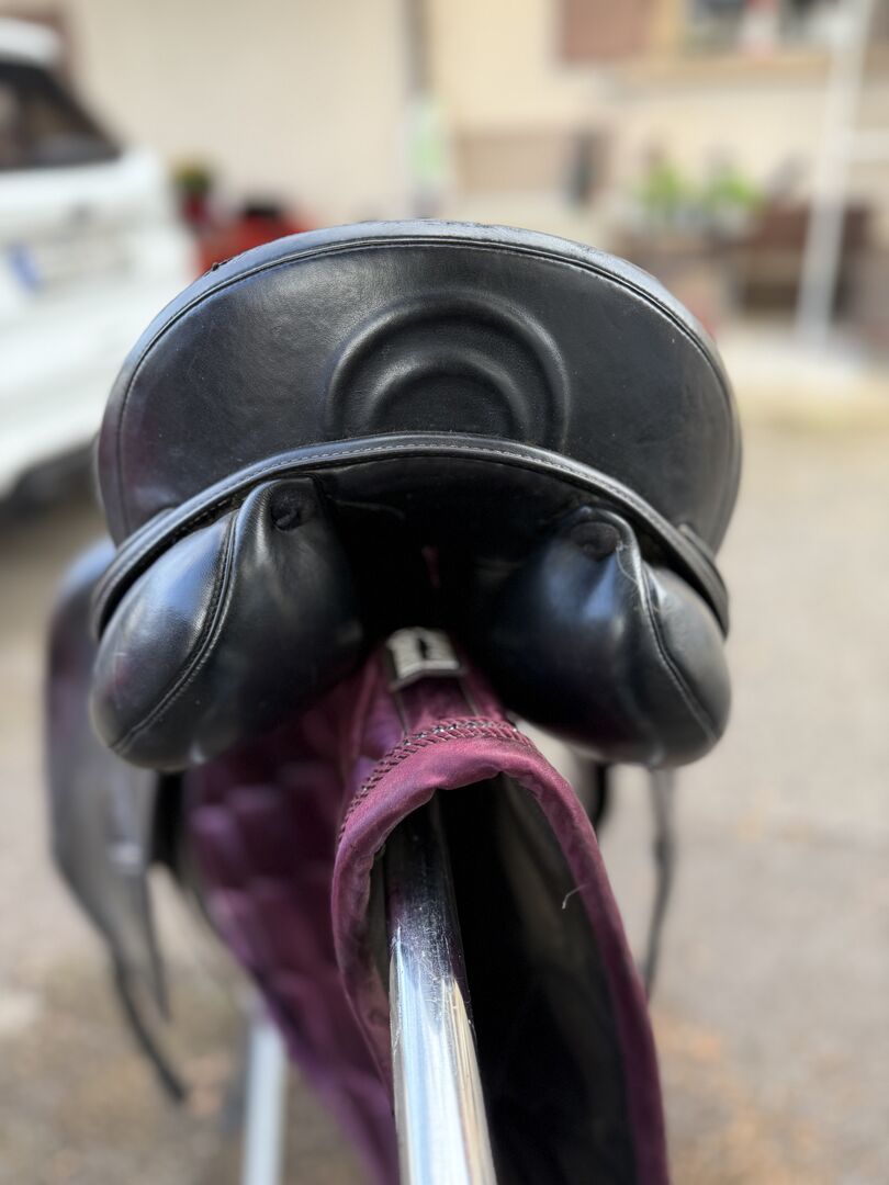 Prestige LC dressuurzadel 17/35 of 17/34 - Ik heb een Prestige LC dressuurzadel te koop. 17/35 Ik heb het zelf tweedehands gekocht omdat ik het zo mooi vind. Helaas past het niet op mijn Freiberger merrie. Het heeft een kleine kronkel op de achterpommel.