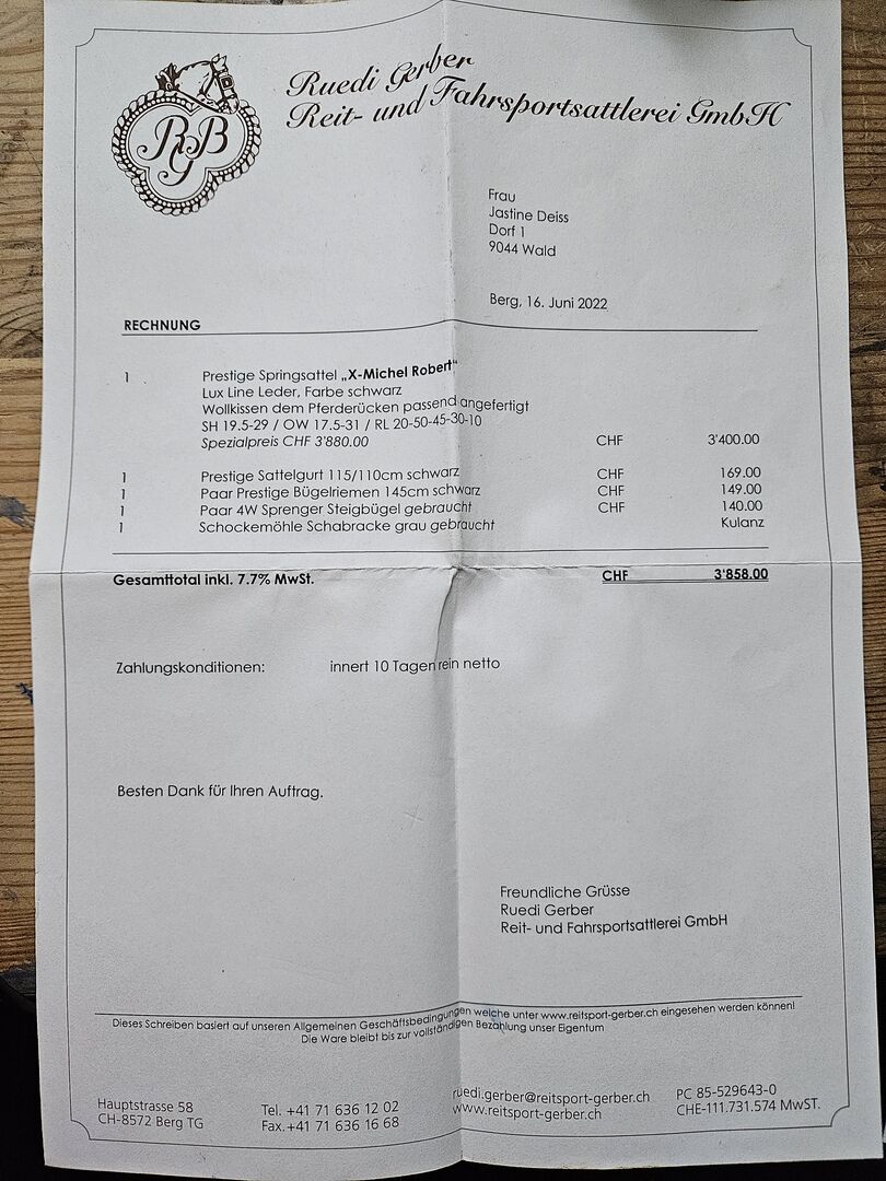Prestige springzadel - Dit zadel is slechts zelden gebruikt en is daarom in zeer goede staat. Het kan door een zadelmaker worden aangepast aan het paard. Een aankoopbon is te zien op de foto's, waar meer gedetailleerde informatie te zien is (zoom).