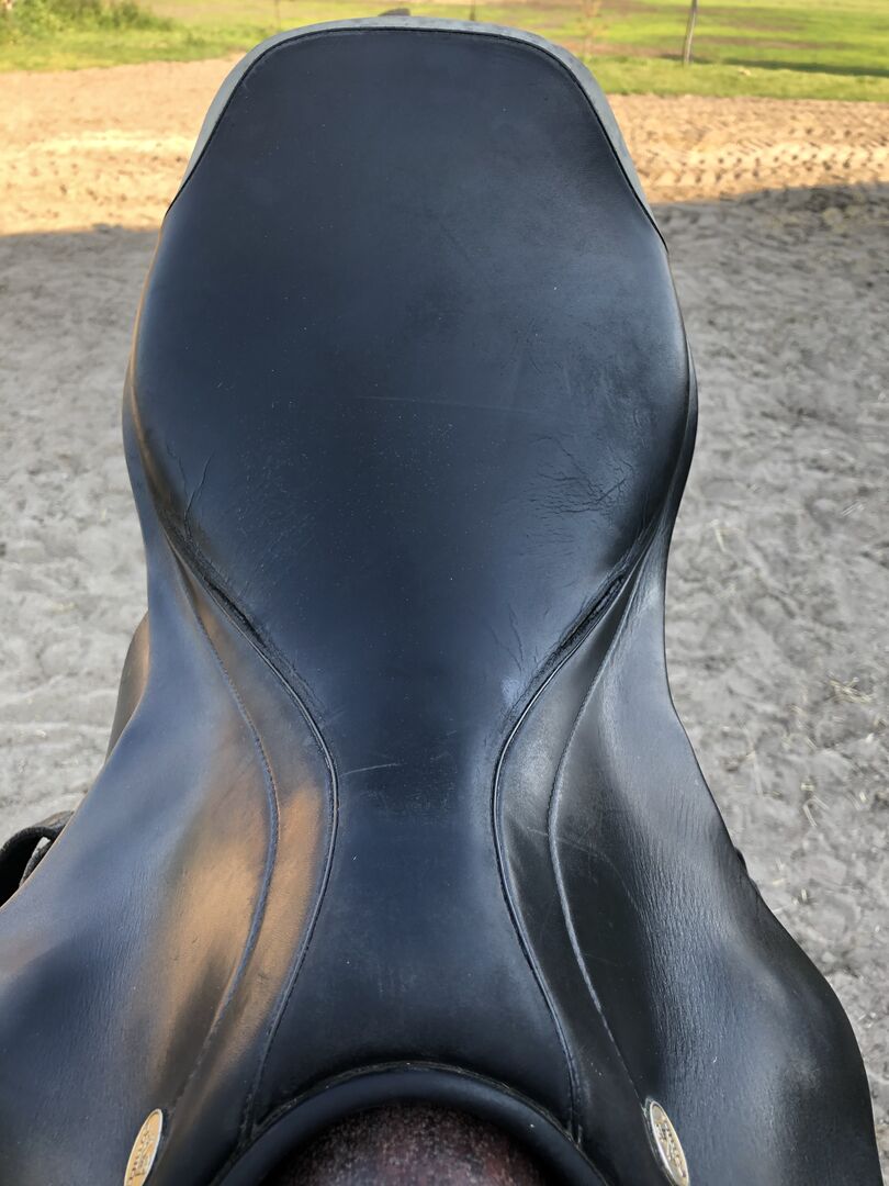 17'', slokdarmbreedte 32 (volgens de fabriek 30, maar werd aangepast). Gereden op een Holsteinse ruin met hoge schoft en grote schouder.