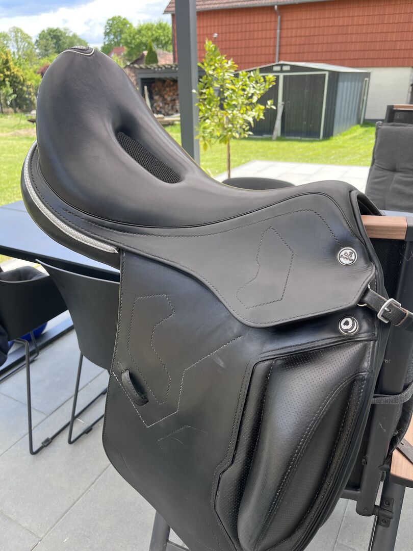 Prestige X-Breath 17" Dressuur K Lux - Zwart/Zilver - Ik verkoop mijn Prestige X-Breath dressuurzadel, maat 17", K Lux, in zwart/zilver.