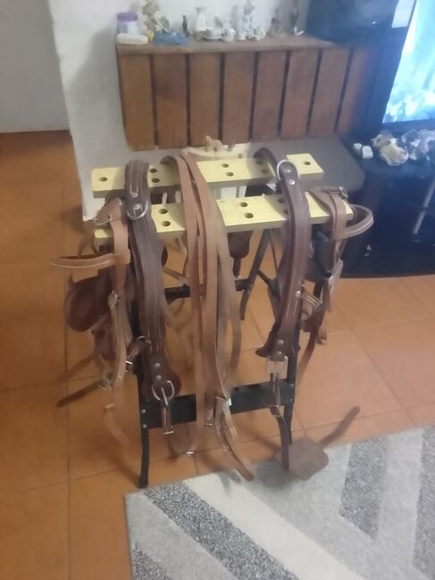 * Complete Double Harness: Full leather set for two horses (harnesses, breastplates, and traces).