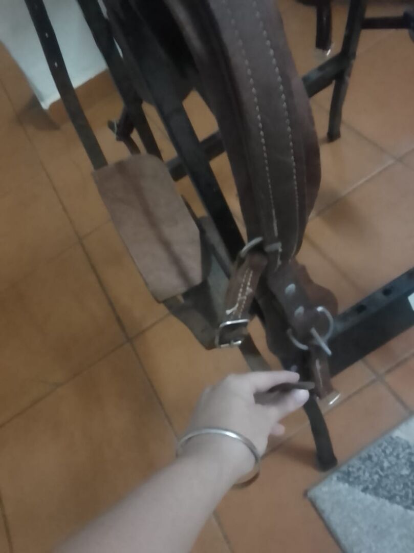* Double Reins: Matching leather pair reins in excellent condition.
