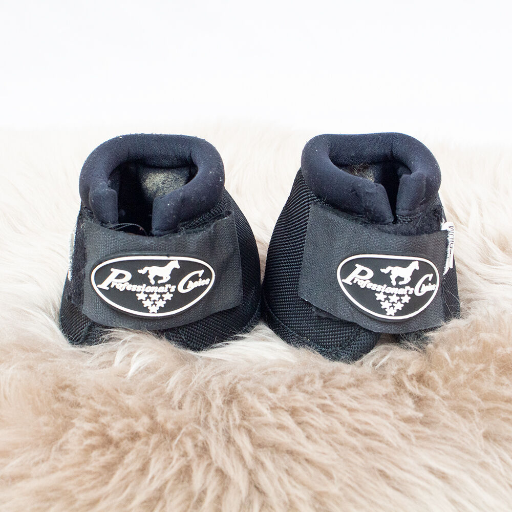 Professional's Choice Overreach Laarzen zwart M - De SECURE-FIT® Overreach Boots bieden bescherming speciaal voor de gevoelige baalstreek van het paard. De Overreach Boots zijn gemaakt van een robuust vinylmateriaal, dat een hoge duurzaamheid en eenvoudige reiniging belooft. De bijzonder sterke klittenbandsluiting biedt optimale houvast tijdens het rijden. Een ingebouwde stop voorkomt dat de laarzen verdraaien en beschermt zo het kroonwiel. De laarzen zijn gemaakt van een ultra-shockvoering die schokken aan de hoef effectief absorbeert. De zwarte hoefschoenen worden geleverd in een set van 2 en zijn maat medium. Dit betekent dat ze 10 cm hoog zijn en een omtrek hebben van 20 cm (gemeten aan de bovenrand). Ze hebben gebruikssporen, zoals een lichte verkleuring en open plekken aan de binnenkant. Aan de buitenkant zijn ze in zeer goede staat.