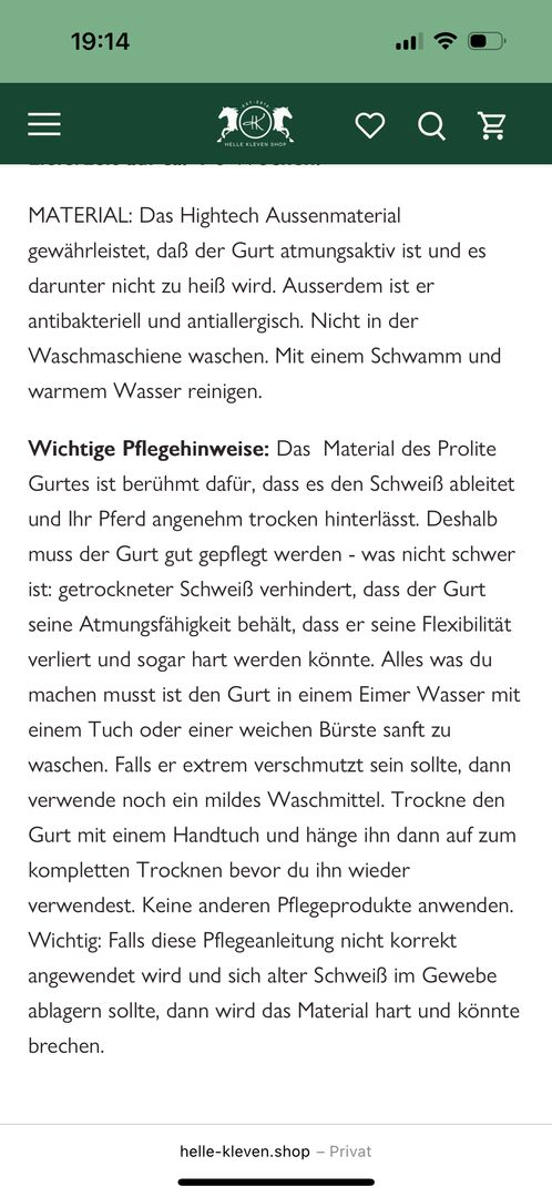 Prolite anatomischer Kurzgurt (Prolite Narrow Girth Dressur)