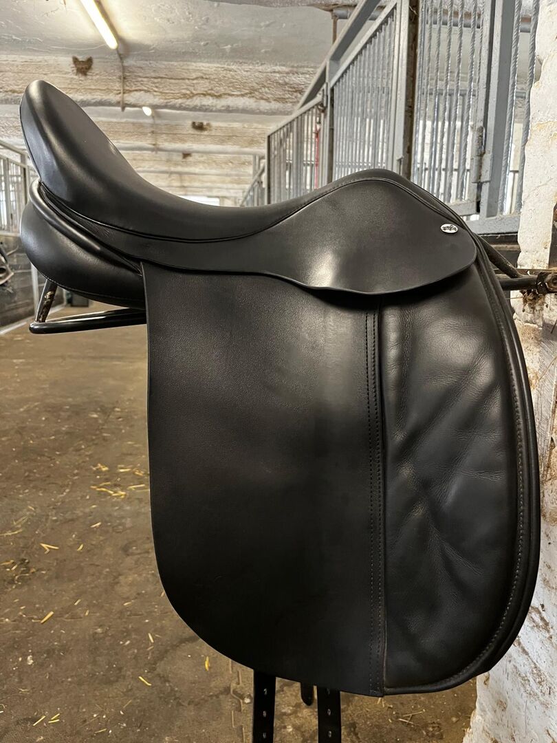 Prydi Switch GP dressuurzadel - 17,5" - Medium schenkelplaat - Ik verkoop mijn goed onderhouden Prydi Switch GP dressuurzadel met 17,5" zit en zwarte "medium" slokdarmplaat. Het zadel is nieuw gekocht in juni 2022 (factuur beschikbaar). Informatie van de fabrikant: De PRYDI SWITCH maakt indruk met zijn innovatieve, verwisselbare slokdarmplaatsysteem, waarmee de breedte van het zadel snel en individueel kan worden aangepast. Het zadel is gebaseerd op een traditionele Engelse zadelboom en biedt een uitstekende pasvorm dankzij de ergonomische slokdarmplaat. Staat: - Zeer goede, goed onderhouden staat - Alleen de gebruikelijke gebruikssporen - De roestvrijstalen ringen die typisch zijn voor IJslandse zadels zijn op mijn verzoek verwijderd - Regelmatig gecontroleerd door de zadelmaker en opgevuld indien nodig Nieuwprijs: € 2.800